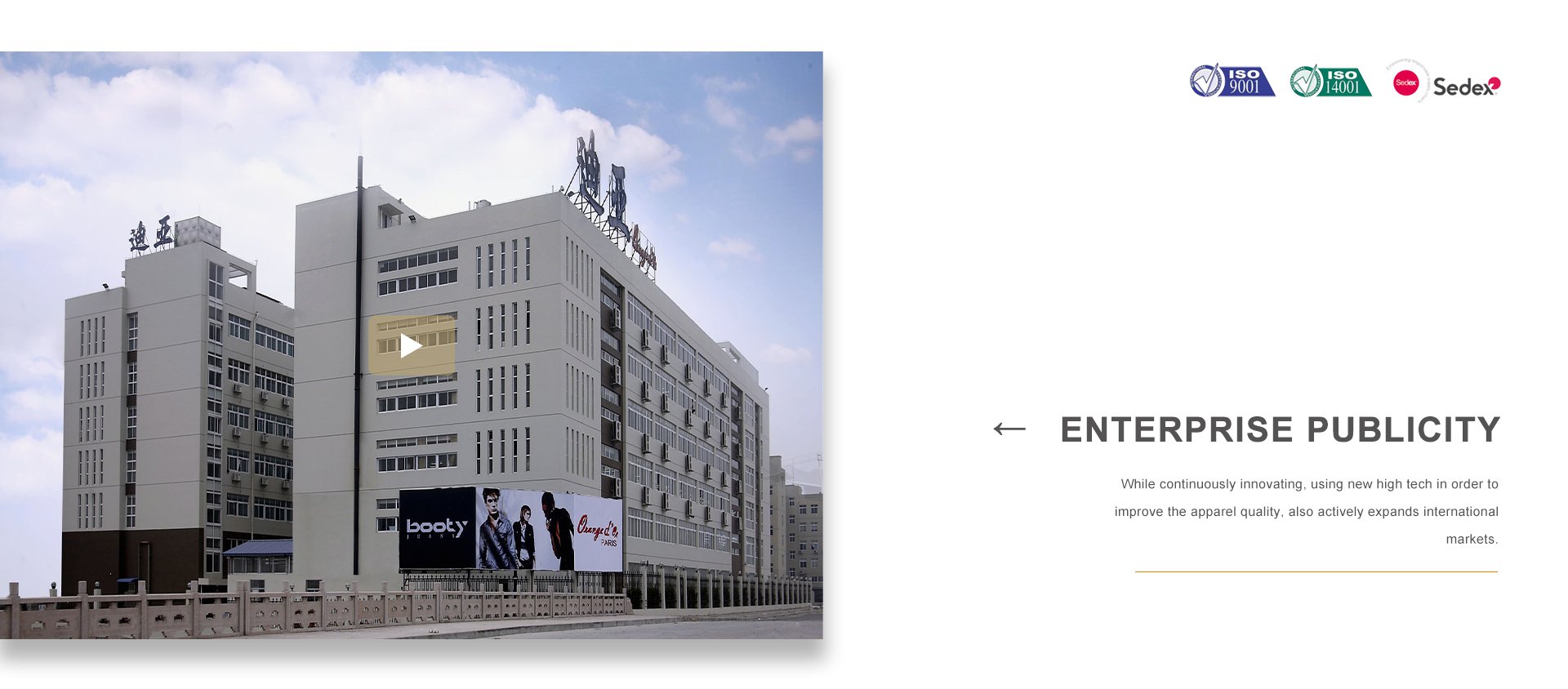 浙江迪亞服飾有限公司于1998年在世界時(shí)尚品牌之都——法國巴黎二區(qū)應(yīng)運(yùn)而生。同年,在浙江省甌海經(jīng)濟(jì)開發(fā)區(qū)東方南路28號設(shè)立服裝制造工廠。公司集服裝設(shè)計(jì)、生產(chǎn)、營銷、品牌于一體,在不斷創(chuàng)新、采用高新技術(shù)提高服飾質(zhì)量的同時(shí),積極拓展國際市場,海外營銷部長期與LV集團(tuán)旗下的MAJE、SOEUR、BALIBARIS等國際著名品牌保持非常緊密的合作關(guān)系。